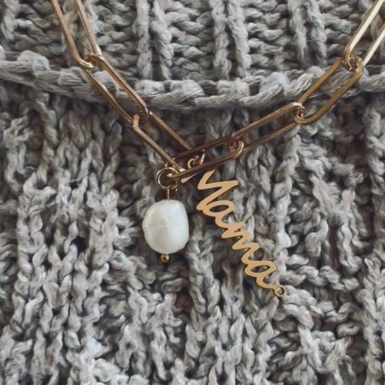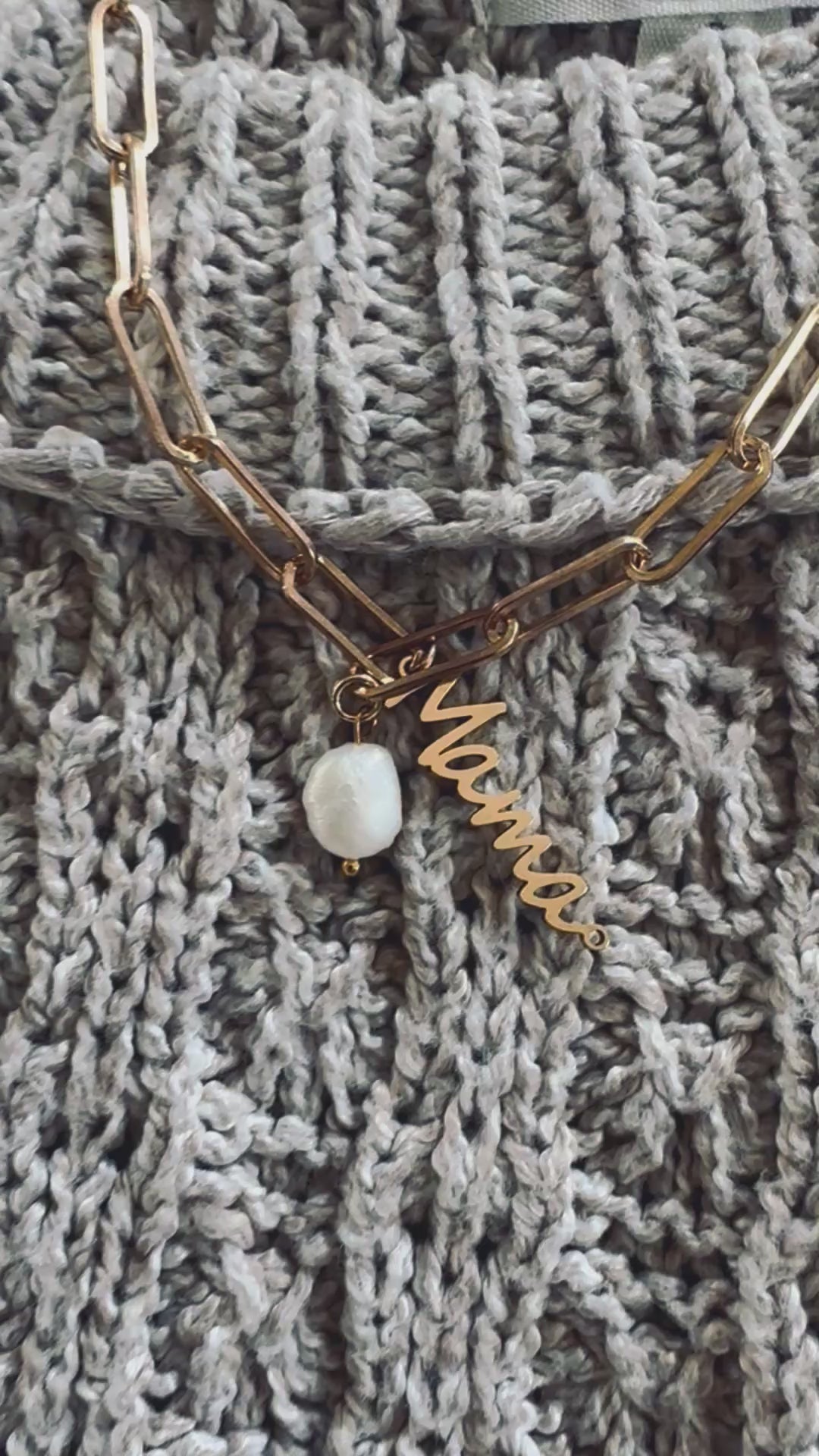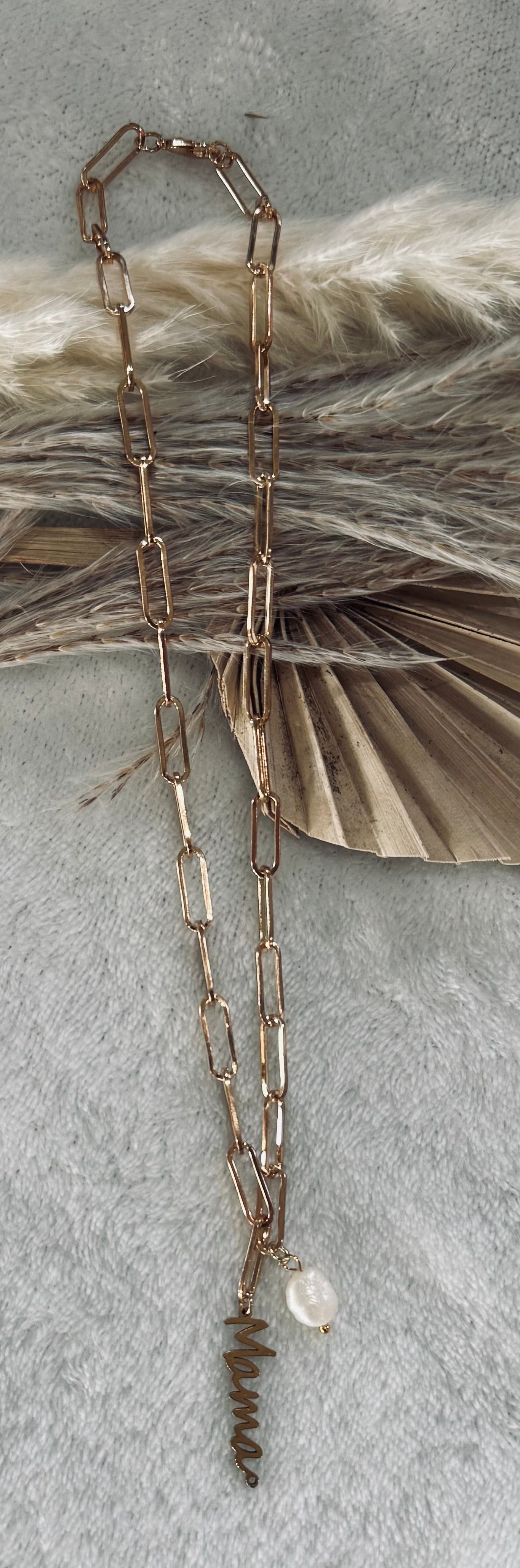 Crafted with a modern farmhouse charm, this necklace features a bold paperclip chain paired with a delicate freshwater pearl and “Mama” script charm. A timeless mix of strength and softness, it’s perfect for everyday wear or layering with your favorite pieces. Inspired by the beauty of nature and the heart of motherhood, this piece carries both elegance and meaning.