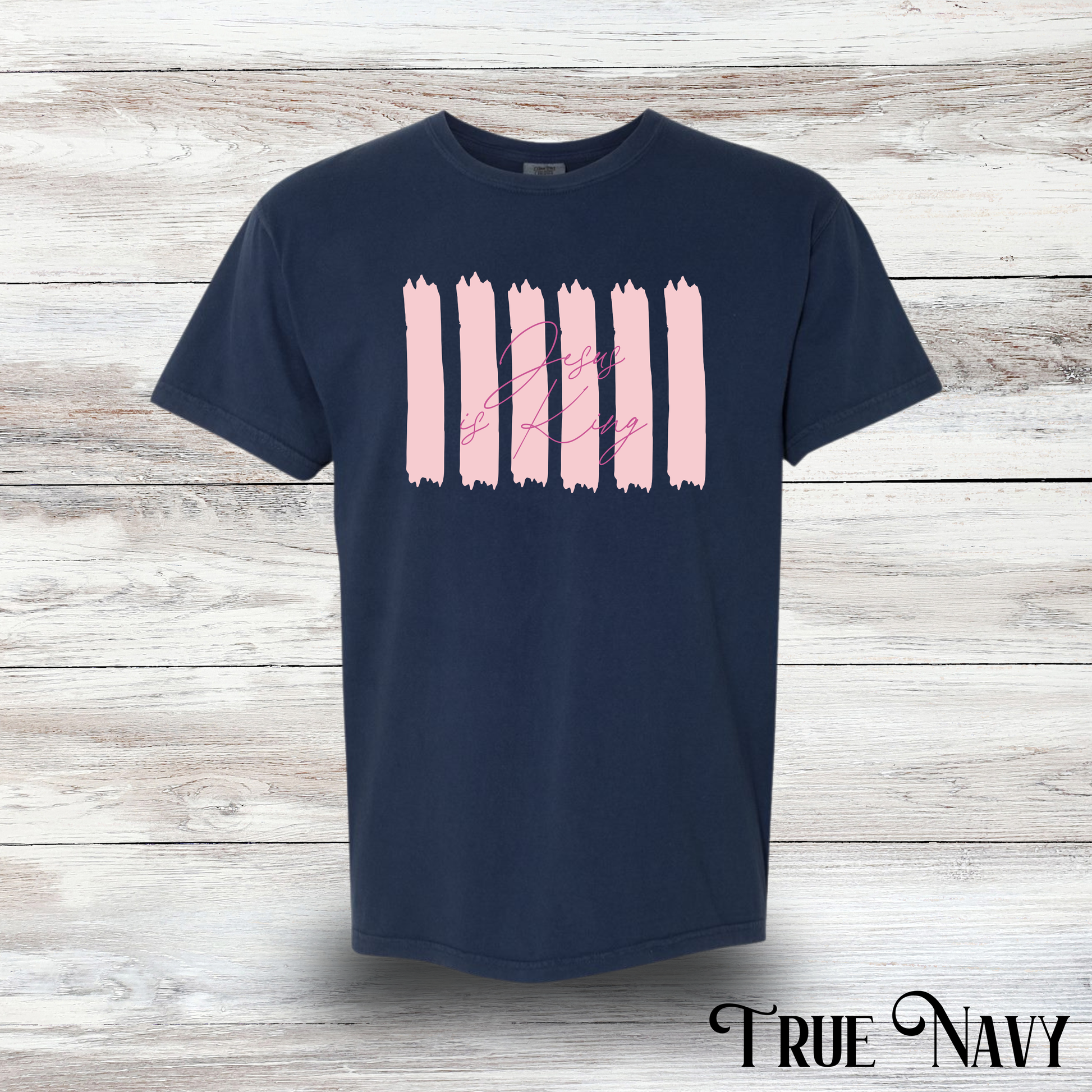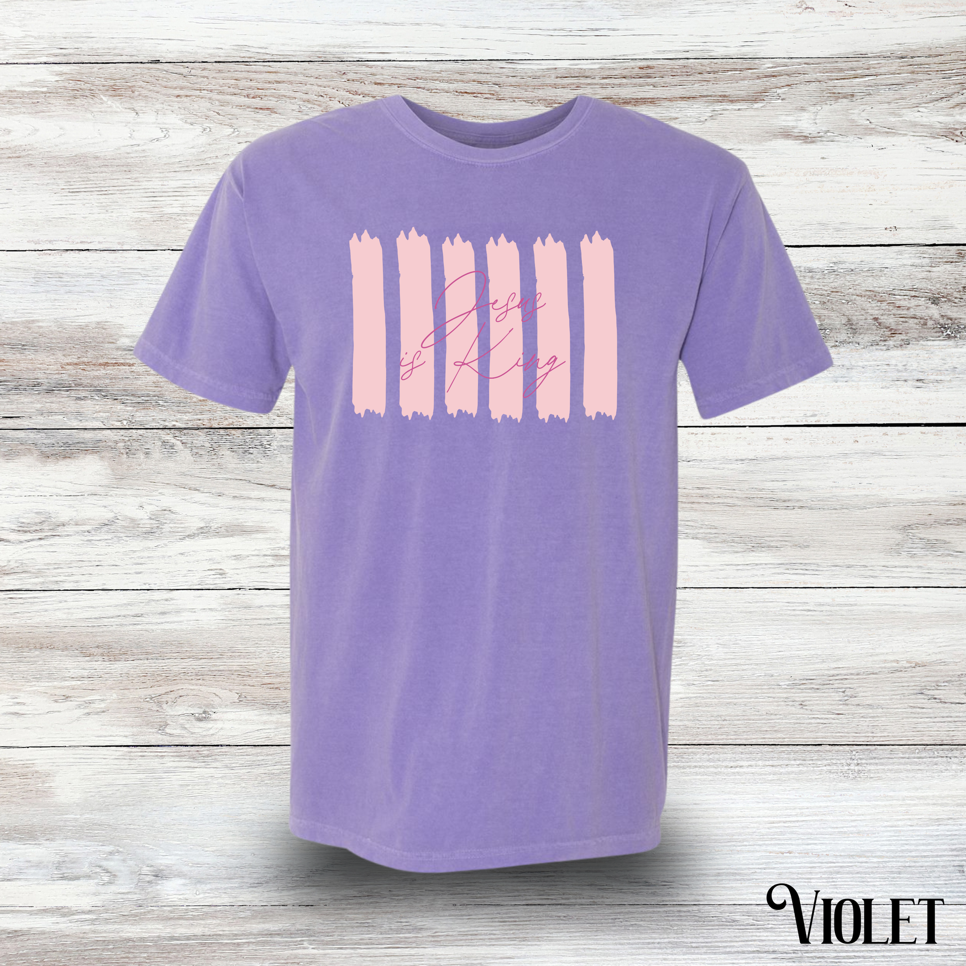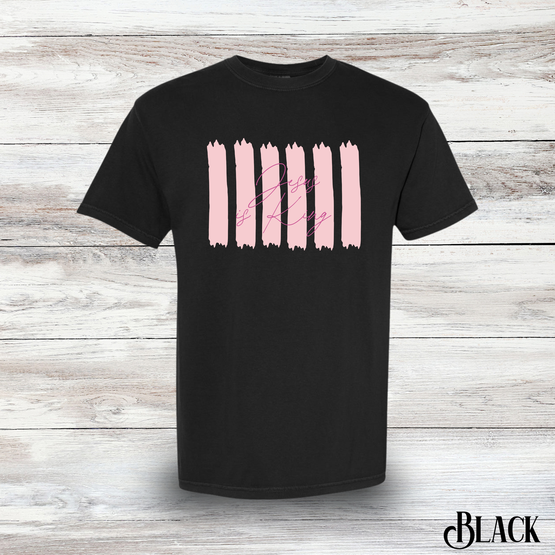 Show your faith with a fun twist in this Jesus is King striped graphic t-shirt. Comfortable and casual, it’s perfect for everyday wear or making a statement with style. Let your faith shine brightly while keeping things light and playful!