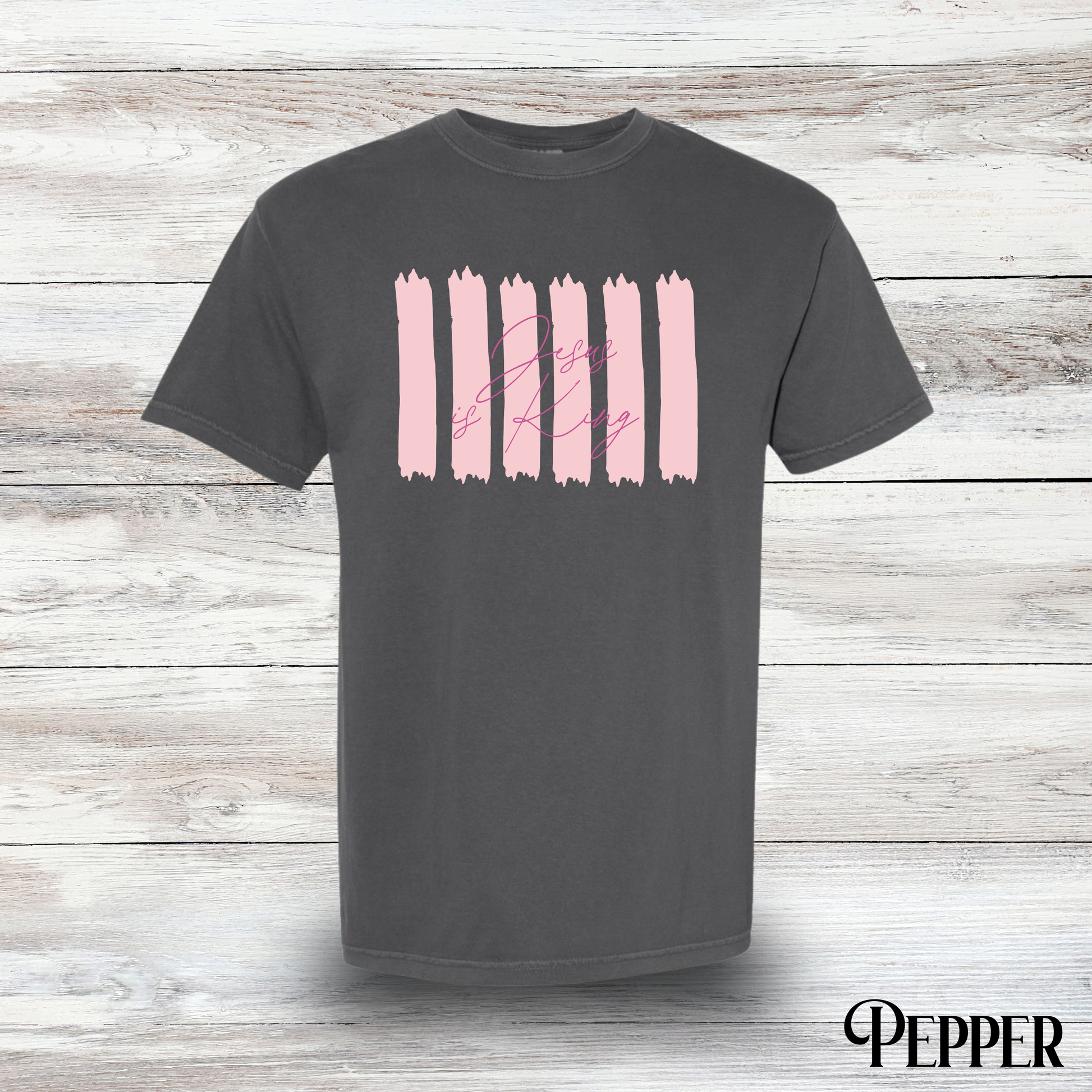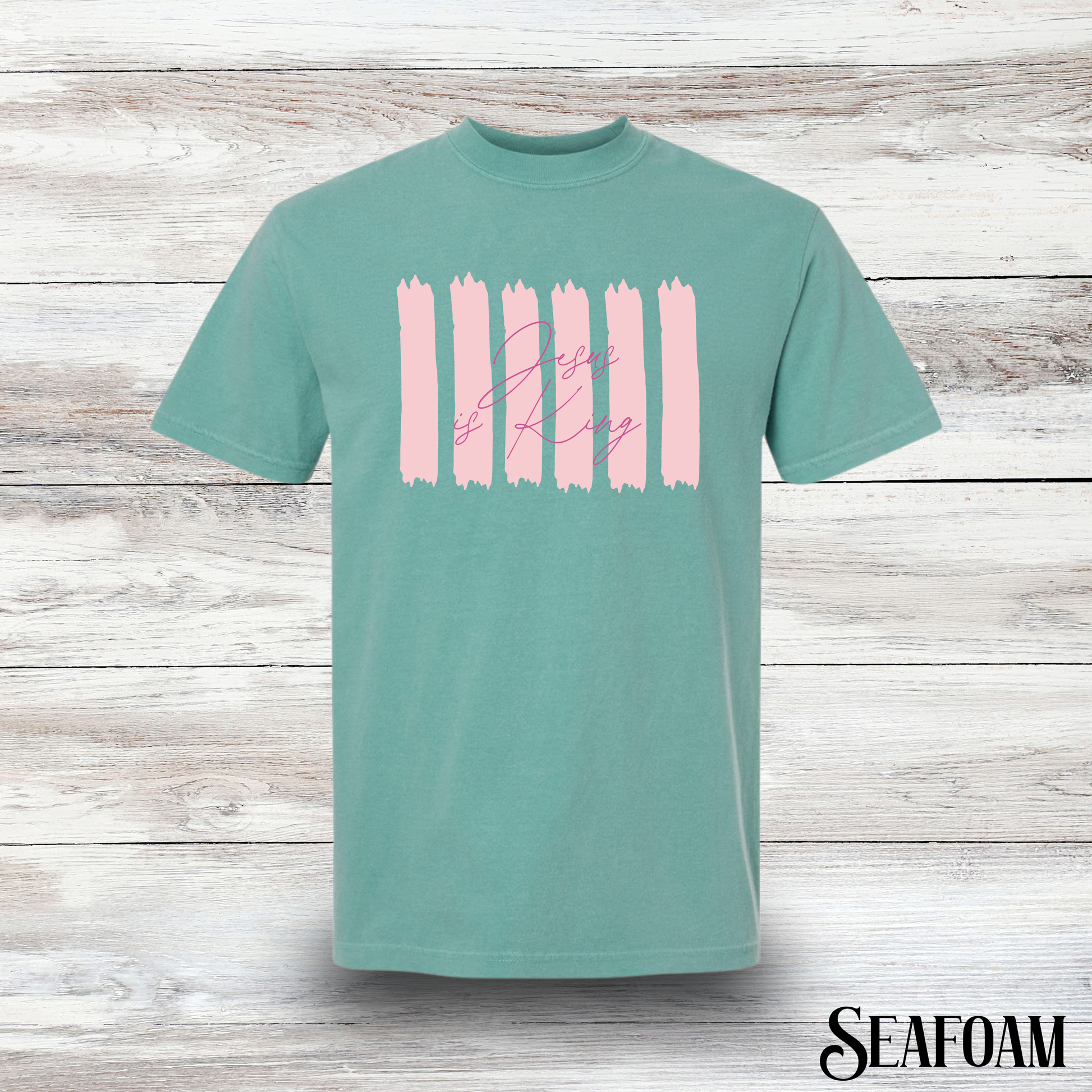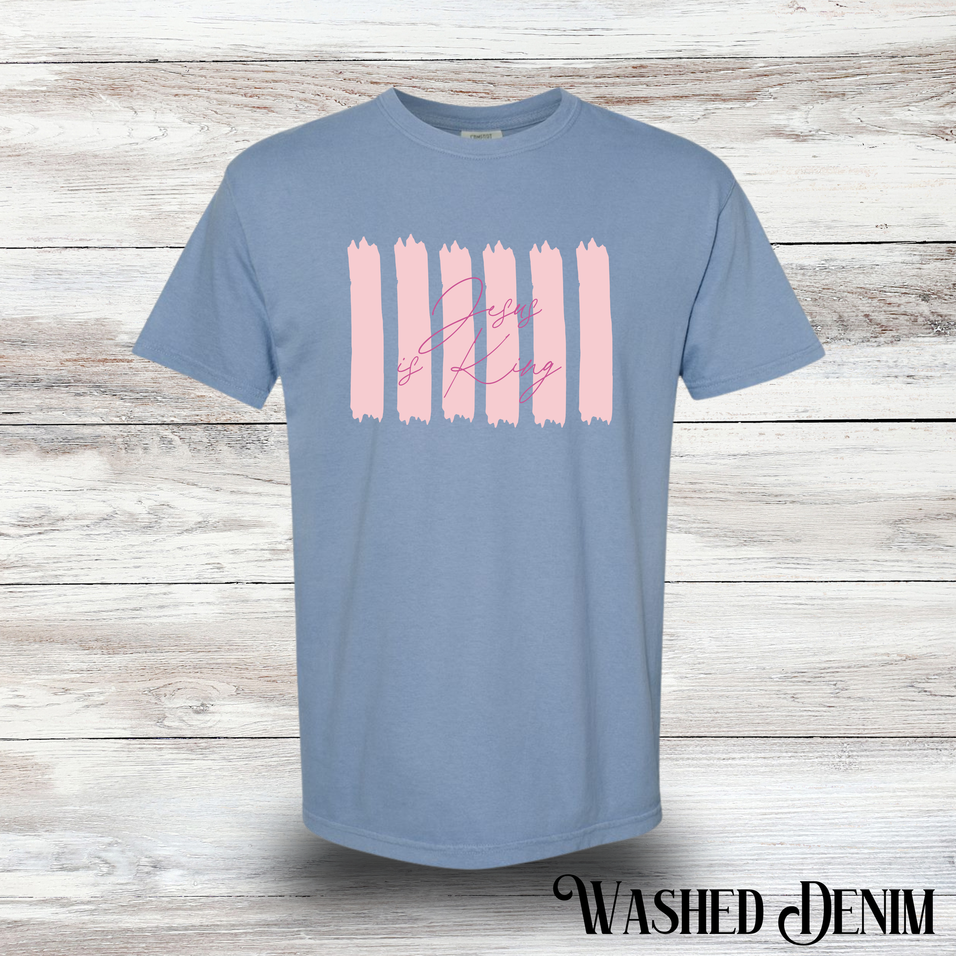 Show your faith with a fun twist in this Jesus is King striped graphic t-shirt. Comfortable and casual, it’s perfect for everyday wear or making a statement with style. Let your faith shine brightly while keeping things light and playful!