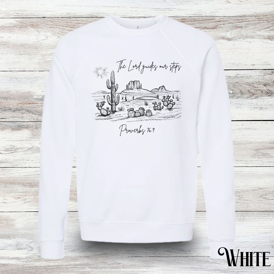 Step out with confidence wearing "The Lord Guides Our Steps" crew neck. This cozy, comfortable sweatshirt is perfect for those who like faith and fashion to walk side by side. Whether you're taking a stroll or just lounging, this playful reminder keeps you grounded and smiling every step of the way.