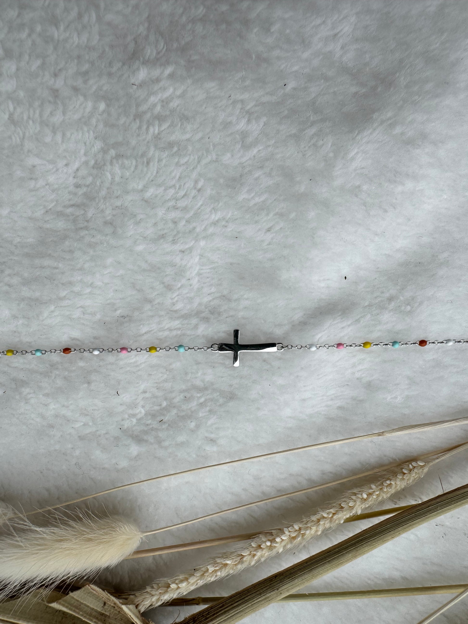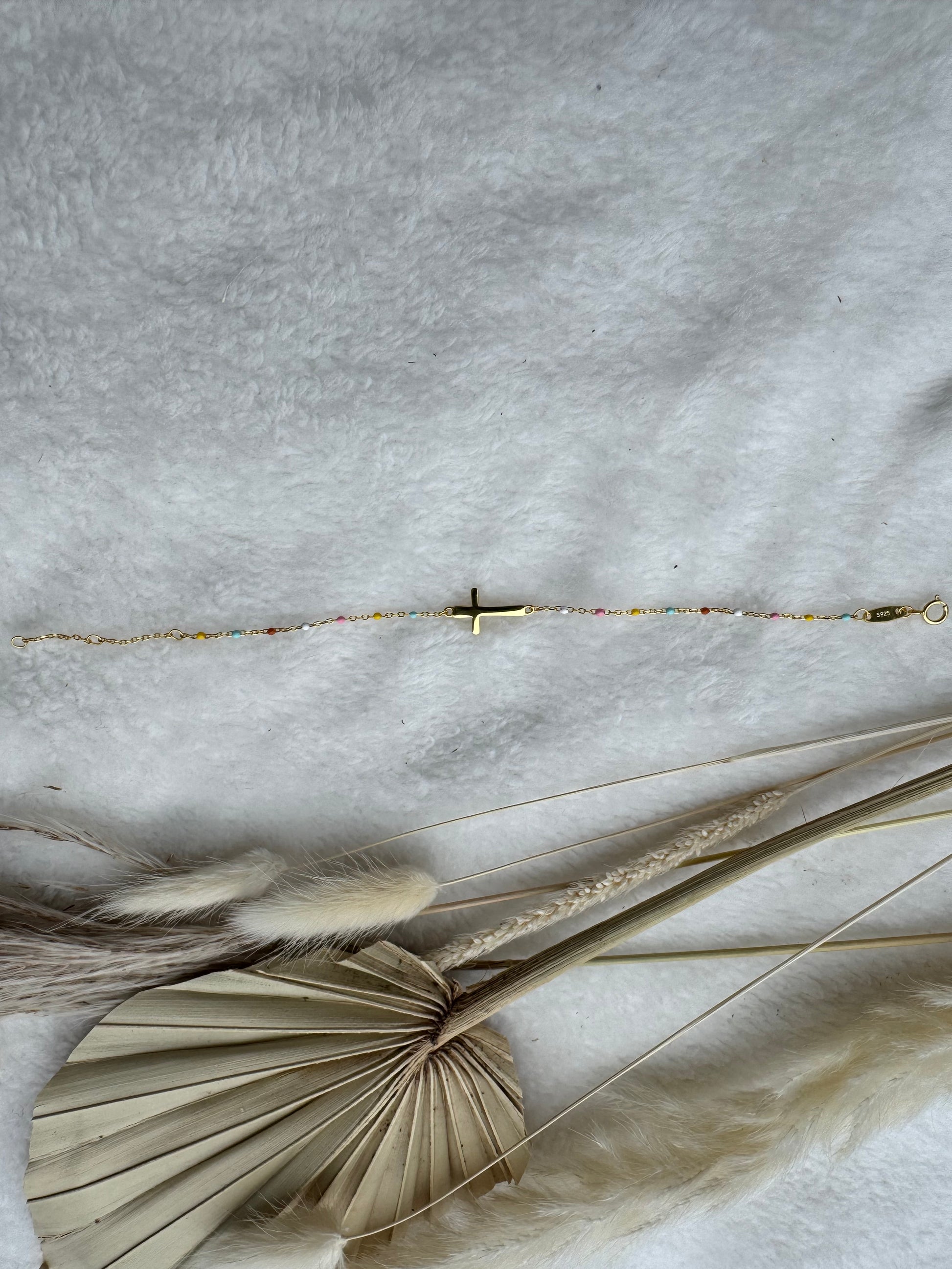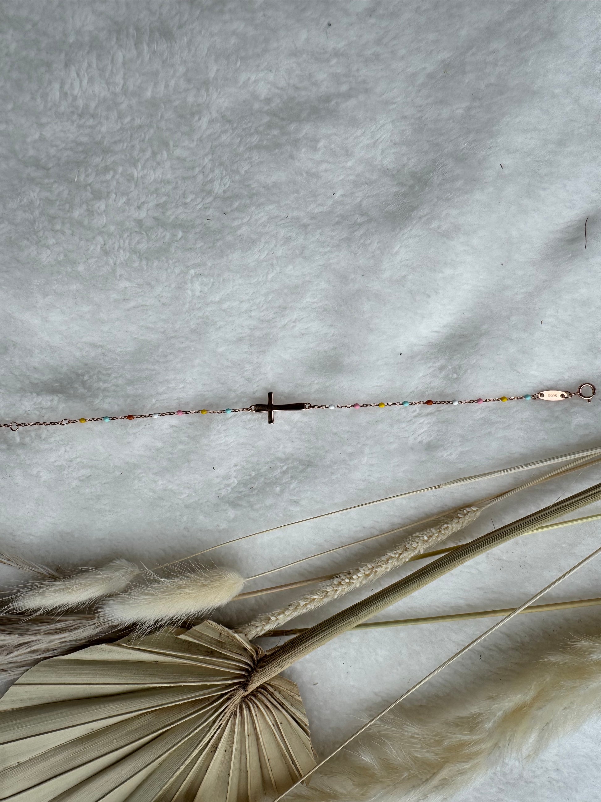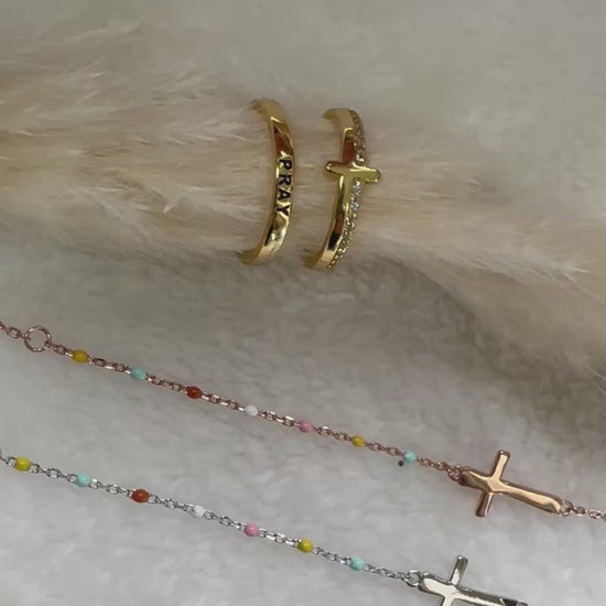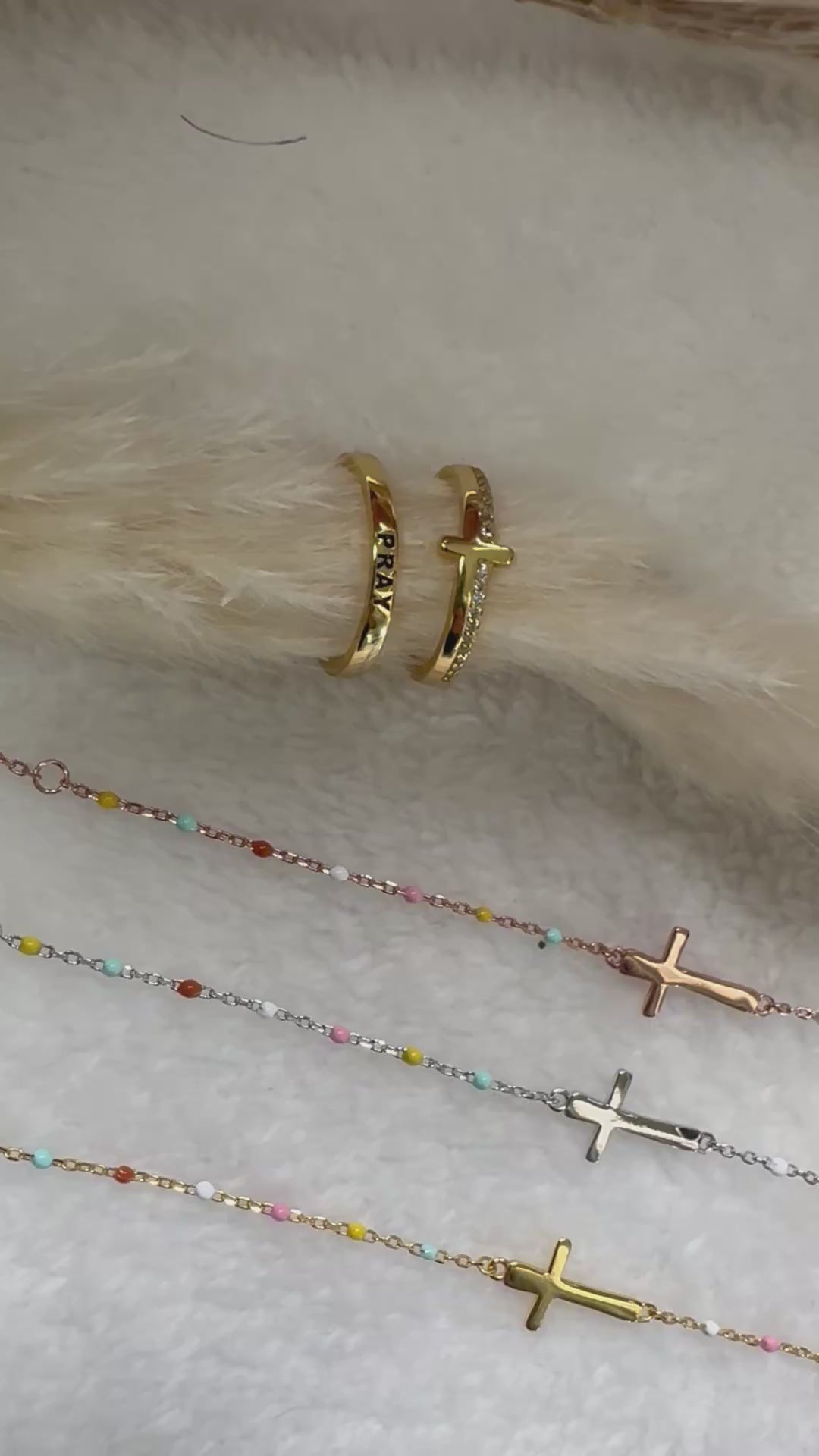 Delicate yet full of meaning, this bracelet features a dainty chain with soft, colorful accents and a centered cross as a reminder of unwavering faith. Available in sterling silver, warm rose gold, and radiant gold-plated finishes, it’s perfect for layering or wearing on its own as a subtle daily statement of grace. Lightweight and versatile, this piece makes a thoughtful gift or a personal keepsake that blends faith with simple elegance.